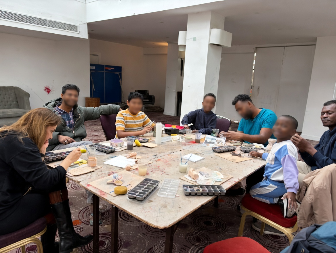 To support wellbeing and create positive social spaces, Migrant Haven delivered craft and wellbeing sessions within asylum accommodation settings.